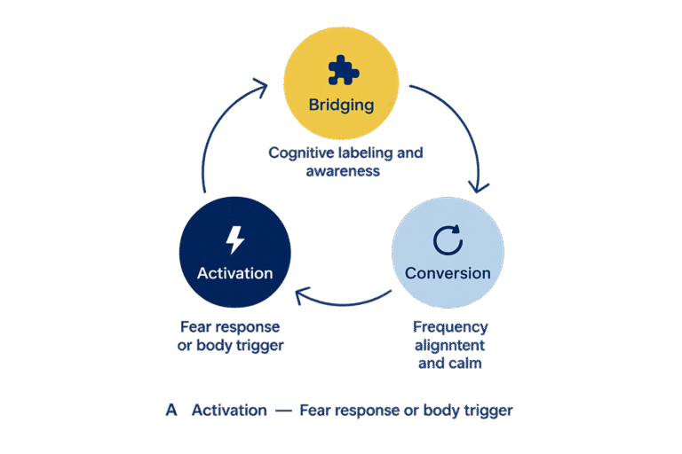 In C-frequency states, the body’s internal signals — heartbeat, breath, or muscle tension — become exaggerated and misread as threats. FQST helps learners reinterpret these sensations through gradual exposure and recognition exercises, teaching the brain that discomfort ≠ danger.